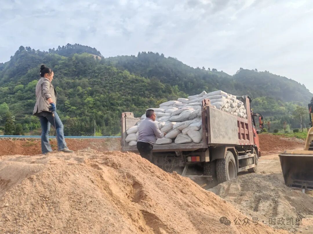 说干就干,在驻村工作队和村“两委”的协调下,紫荆村帮扶单位黔东南州机关事务局牵线爱心企业贵州建工集团第六建筑工程有限公司捐赠20吨水泥,第一书记经费购置水泥25吨。物资到位后,村“两委”立即发动“党群共建”行动,50余名村民投工投劳参与硬化机耕道,